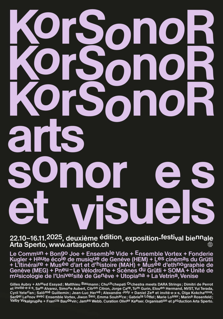 KorSonoR, a biennial exhibition-festival dedicated to sound and visual arts, explores sound in our environment, whether physical, social, technological, architectural or natural. What we refer to as sound is very broad: vocal, instrumental, electronic, field recordings, spatial resonance, sound archives, etc. Sound is omnipresent and has emotional, documentary, memorial, sociocultural, political and creative significance. Sound requires listening and attention, which help us understand people, things and situations, and stimulate the imagination. Sound involves duration, which allows us to take a step back, both towards personal introspection and an understanding of the world. More…