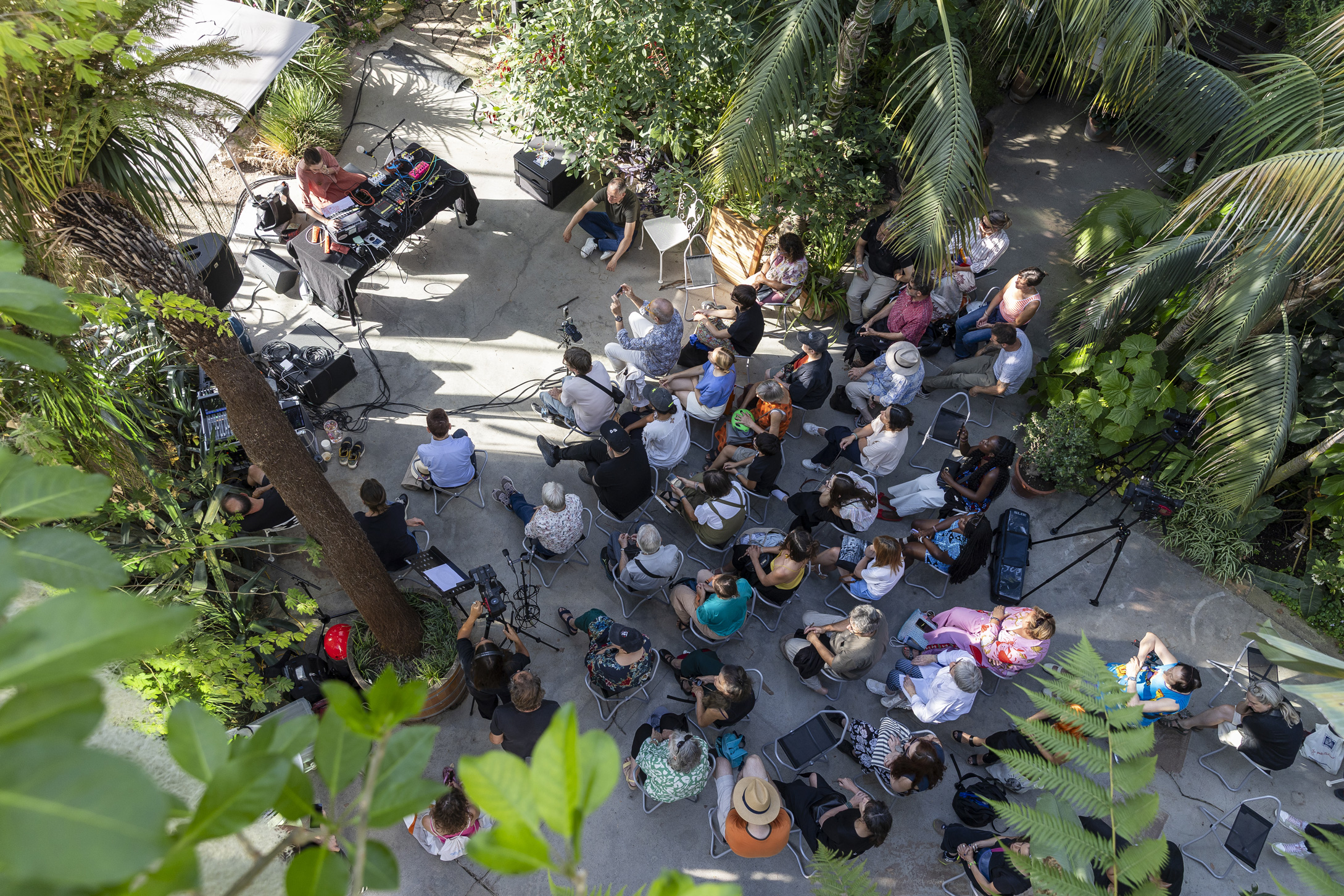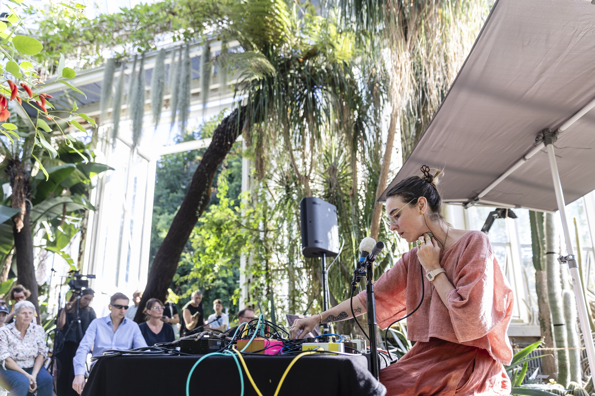 Immerse yourself in a collective forest where animals, wind and natural frequencies compose a living symphony based on the artist’s field recordings. In the heart of the Botanical Garden’s temperate greenhouse, let yourself be enveloped by a shifting soundscape, woven from whispers, distant resonances and secret vibrations. Each visitor influences this ephemeral creation, becoming in turn an interpreter of this silent dialogue between humans and plants. An acoustic surprise awaits you. This poetic immersion transforms the greenhouse into a harmonious ecosystem where active listening and contemplation respond to each other. Between field recordings and live music for the living beings – human and non-human – present in the greenhouse, the experience invites you to reconnect with nature in a sensory way – a collective ephemeral choir, where everyone participates in the music of the forest. Experience it as a sound walk, an active meditation.