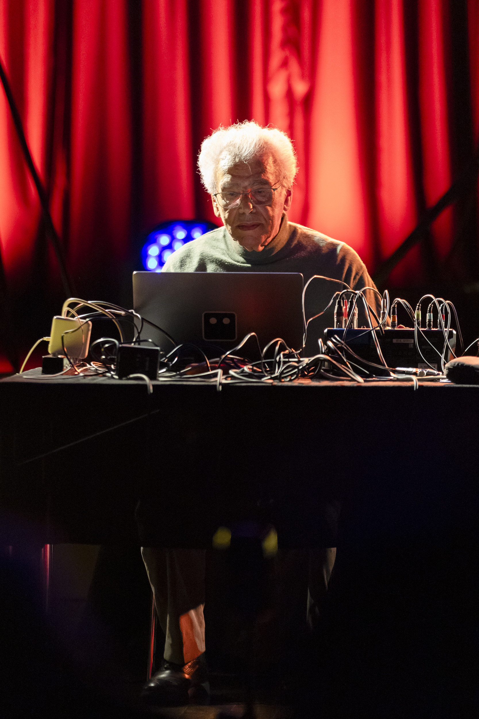 Le programme de la soirée met en lumière la convergence de la musique traditionnelle et de la musique d’avant-garde au Maroc. Les compositions électroacoustiques d’Ahmed Essyad, datant des années 1970, évoquent la musique populaire entendue dans les villages marocains à la fin des années 1950. Gilles Aubry joue avec des synthés modulaires et des sons d’intelligence artificielle inspirés par une chanson marocaine interprétée sur des dispositifs datant des années 1930.