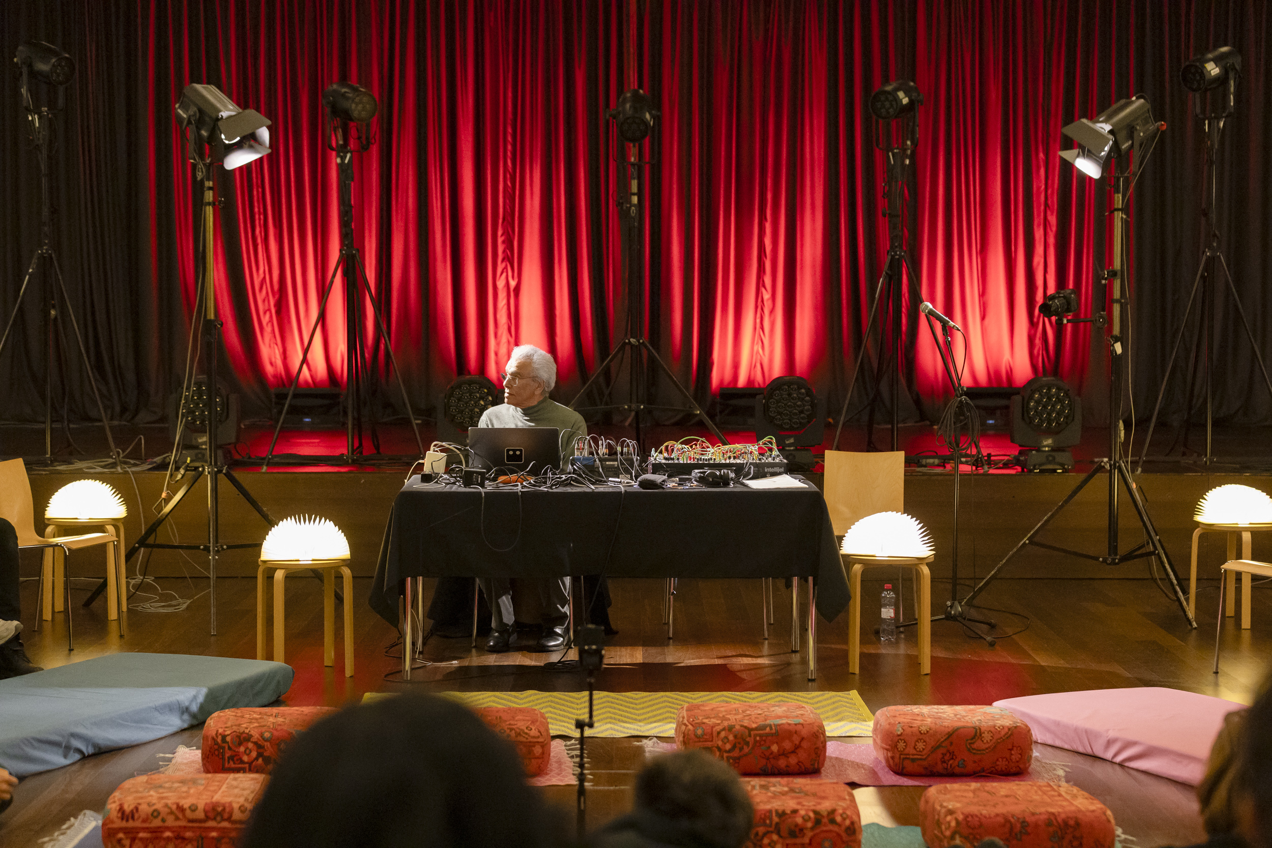 Le programme de la soirée met en lumière la convergence de la musique traditionnelle et de la musique d’avant-garde au Maroc. Les compositions électroacoustiques d’Ahmed Essyad, datant des années 1970, évoquent la musique populaire entendue dans les villages marocains à la fin des années 1950. Gilles Aubry joue avec des synthés modulaires et des sons d’intelligence artificielle inspirés par une chanson marocaine interprétée sur des dispositifs datant des années 1930.